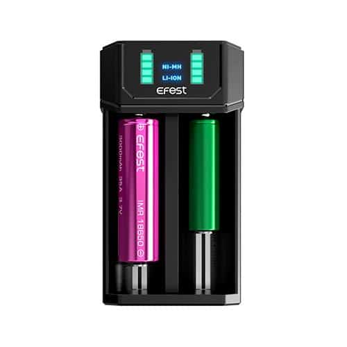 O carregador Efest tem um tamanho pequeno que pode conter vários tipos de baterias usadas em cigarros eletrônicos. Deteta automaticamente a química da bateria e garante uma carga compatível entre 0,5 e 1A. O carregador, entre outras, é compatível com baterias 18650, 18350, 20700 e 21700. Também é compatível com baterias Nimh / NiCd de 1,2 V como AAA, AAA, AA etc …