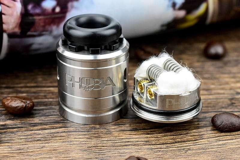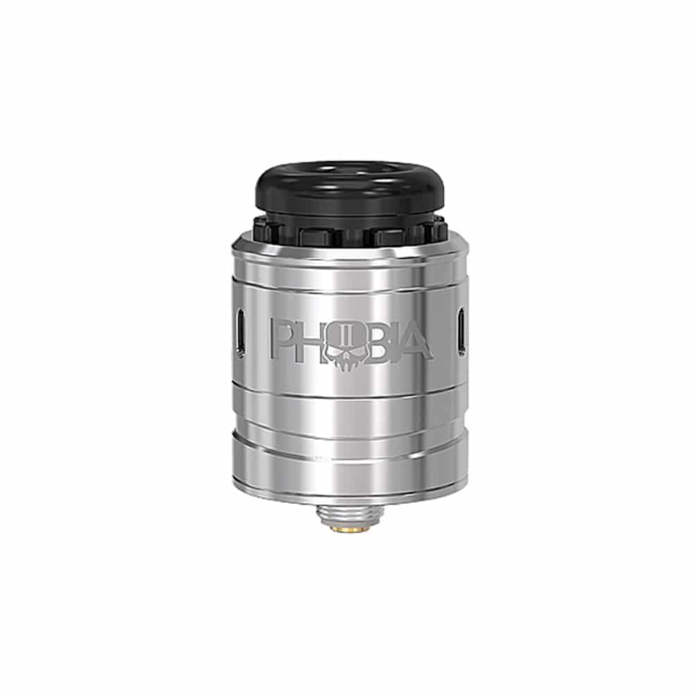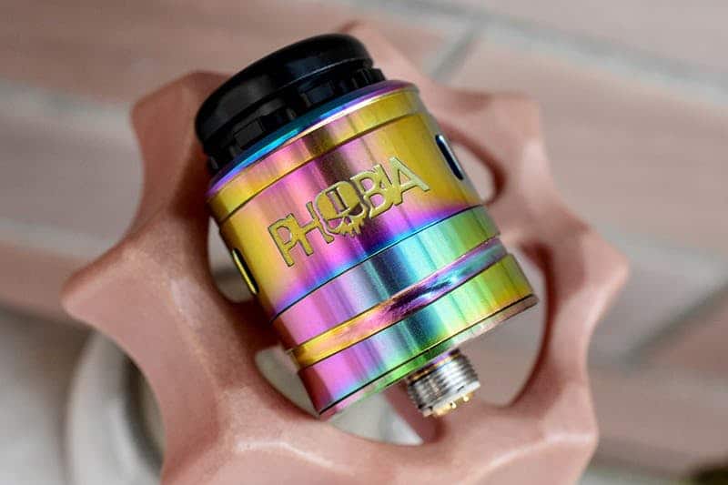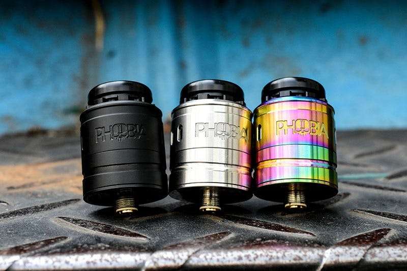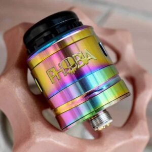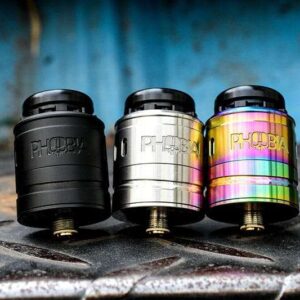 O Vandy Vape Phobia V2 é um dripper que vem em três cores, incluindo preto, arco-íris e aço inoxidável. O RDA também vem com um acessório para ajudá-lo a ajustar os cabos da sua resistência perfeitamente ao seu deck sem postes. O Phobia V2 pode acomodar montagens de resistências simples e duplas.